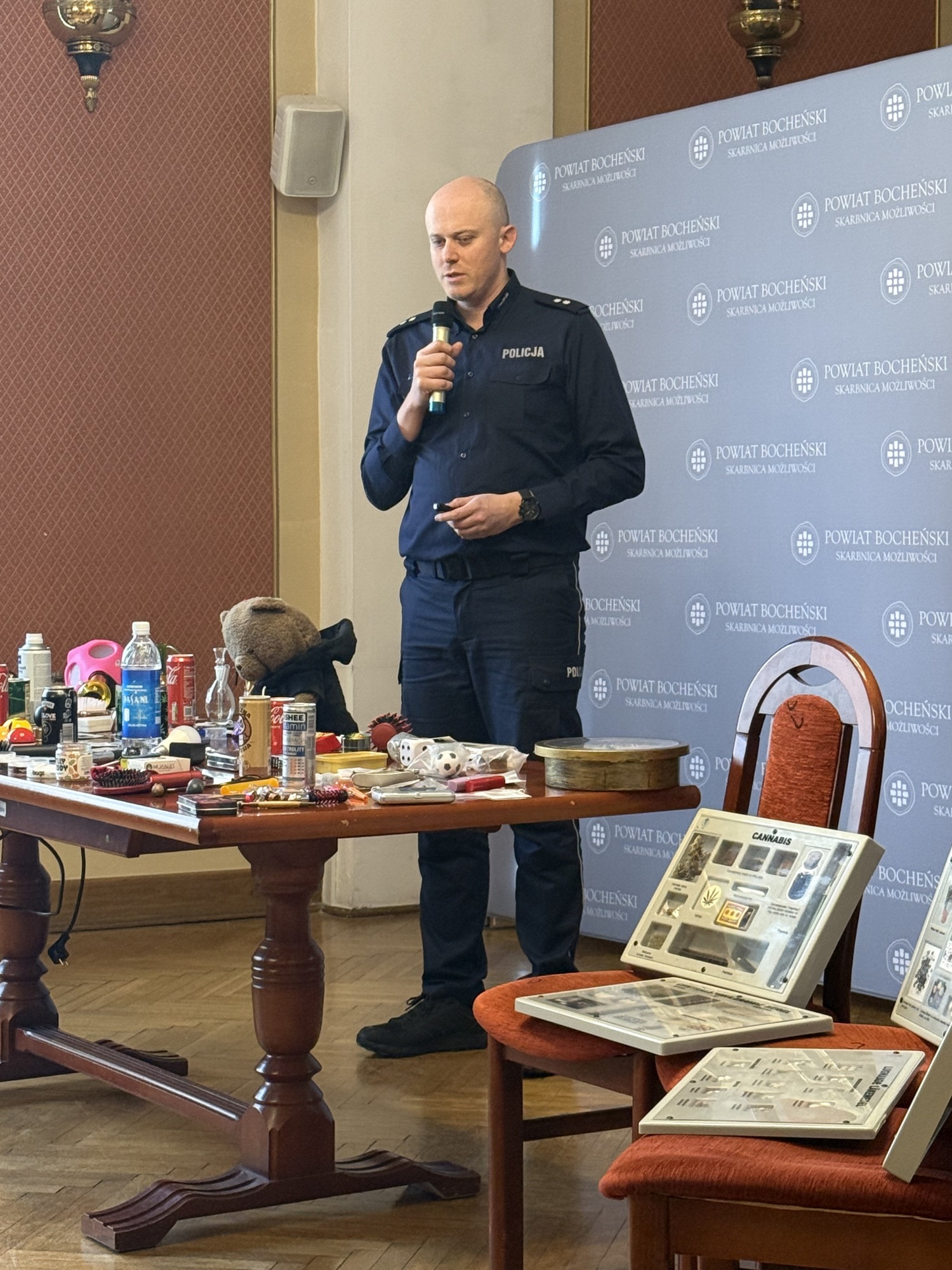 24.11.2025Zajęcia prowadzili funkcjonariusze Komendy Wojewódzkiej Policji w Krakowie. Podkomisarz Hubert Bracik omówił zagrożenia związane z używaniem środków i substancji psychoaktywnych przez dzieci i młodzież, zwracając uwagę na symptomy, które mogą niepokoić opiekunów. Z kolei podinspektor Wojciech Chechelski przedstawił tematykę niewłaściwego korzystania z Internetu oraz wynikających z tego zagrożeń, takich jak cyberprzemoc czy kontakt z niebezpiecznymi treściami.
